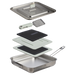 The 5-piece Wildfare Pro Square Pan Cookset gives you more space to be creative. Made of tri-ply bonded stainless steel for even heating. the pan is squared to maximize your cooking area. and has a folding handle. The vented lid is also a strainer. Packed for efficiency. a nonslip cutting board with removable trivet and folding stainless steel spatula nest together. so you can create delicious meals outdoors.